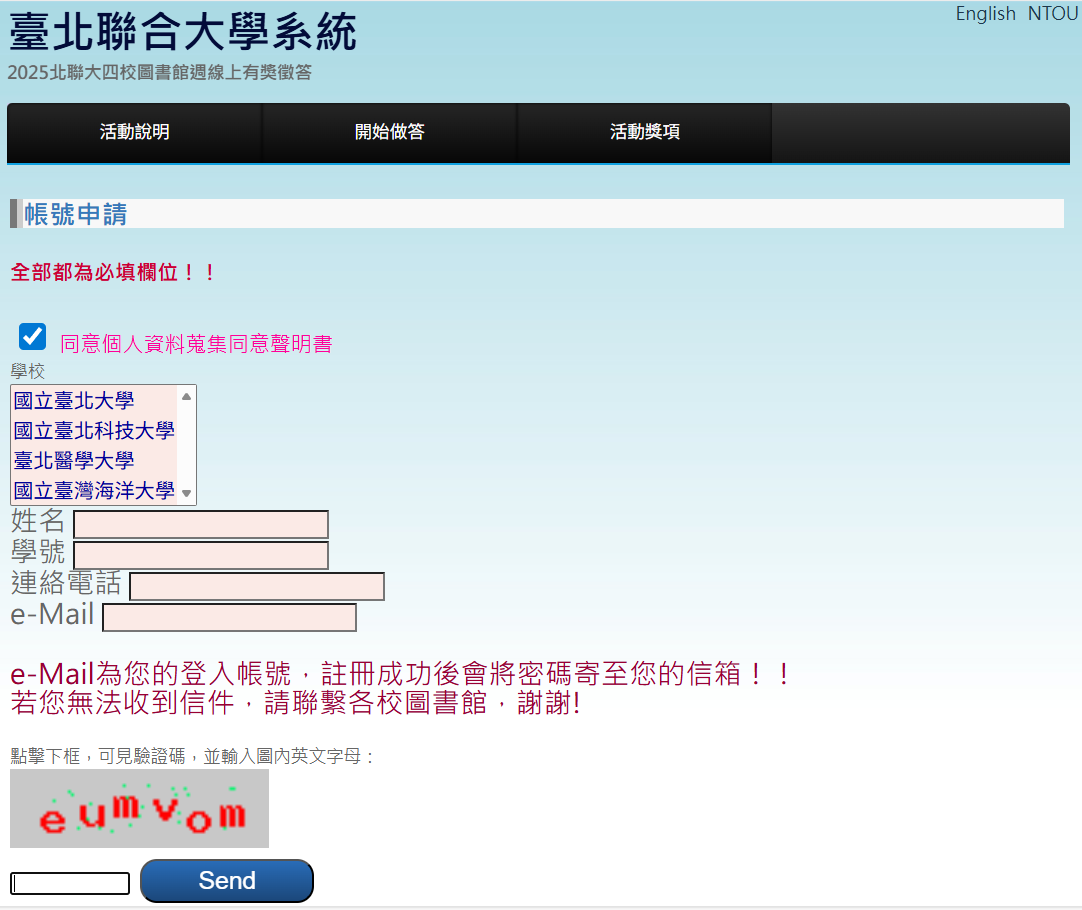 - 線上註冊並答題。